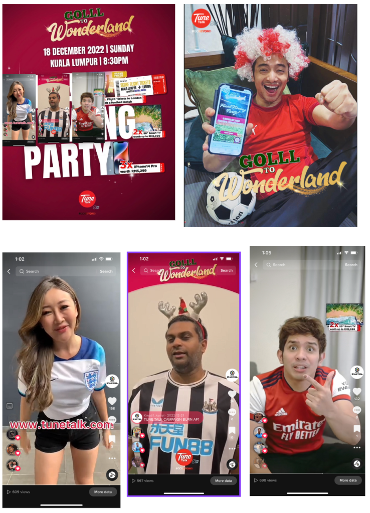 From November to December, Tune Talk introduced an exclusive World Cup 2022 Lucky Draw Collection of products. To increase organic traffic to their website and attract a large number of influencers to their private World Cup events, we partnered with influencers to endorse and showcase their latest products on popular social media platforms such as Instagram and TikTok. This collaboration aimed to drive engagement and generate excitement around Tune Talk’s offerings, ultimately increasing brand visibility and consumer interest.